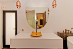 Bathrooms – Modern faucets, sink, shower cubicle, towel rack, imported marble, large mirror, mosquito repellant.