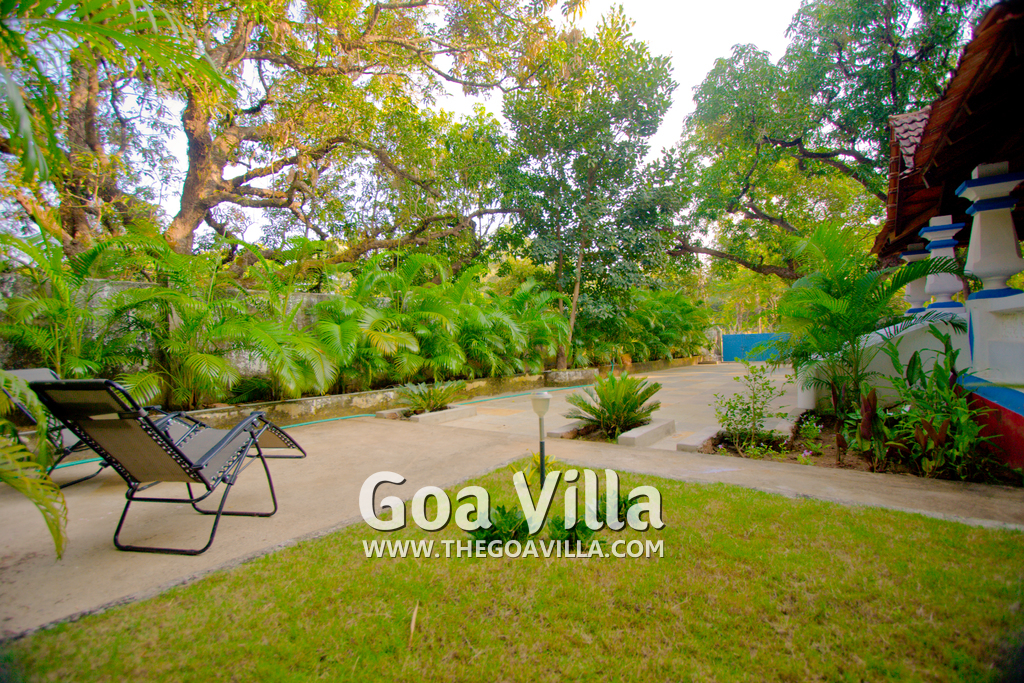 Territory — shady garden, spread out in the 1500 meters, which is in the morning visiting a variety of birds — green parrots, a famous goan bird Kingfisher, as well as the family of squirrels.