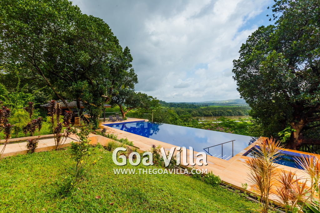 Swimming Pool – This is certainly one of the key highlights of Jungle Villa 3. It has an infinity pool at the edge with a Jacuzzi beside it. There are sun beds beside the pool where guests can sit down and relax. There is also a poolside bar serving drinks and some light snacks. From this area, you will get fantastic views of the Mapusa River and the forest areas. There is nothing between the house and the river except open land. So you will get unobstructed views.