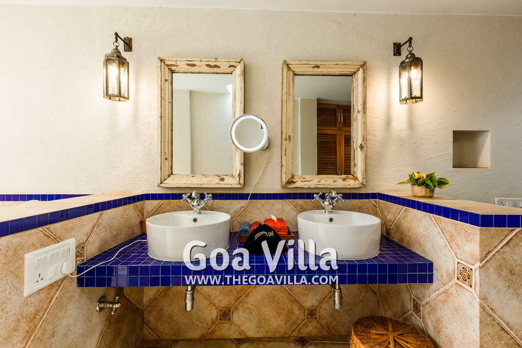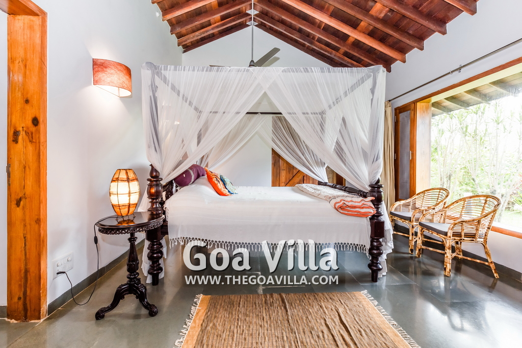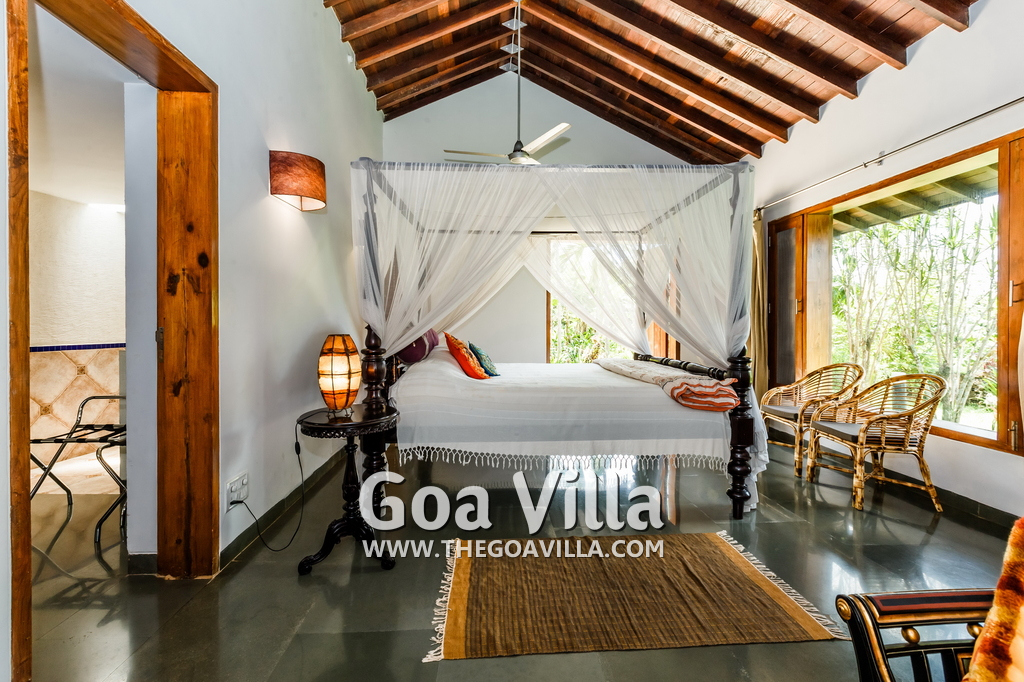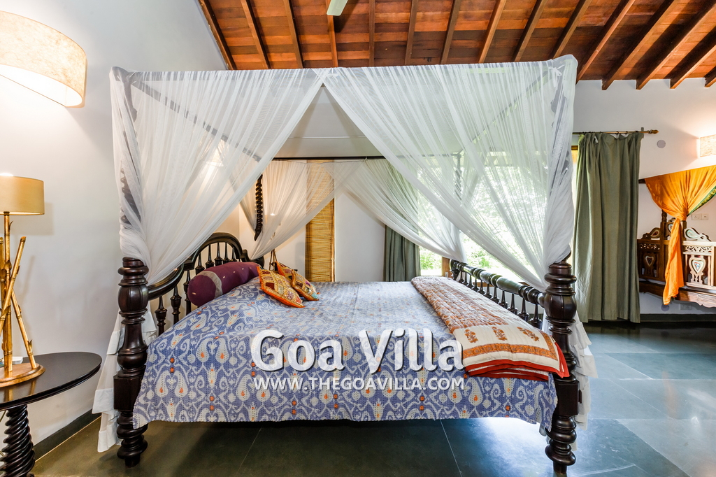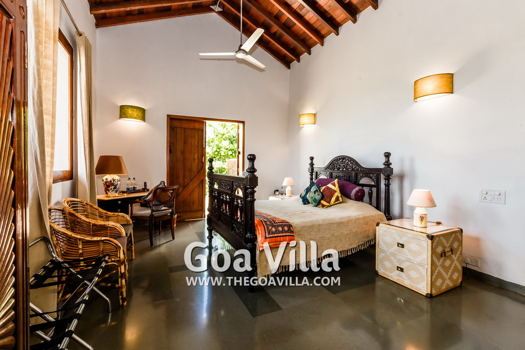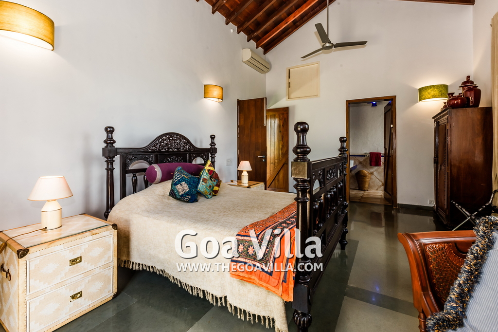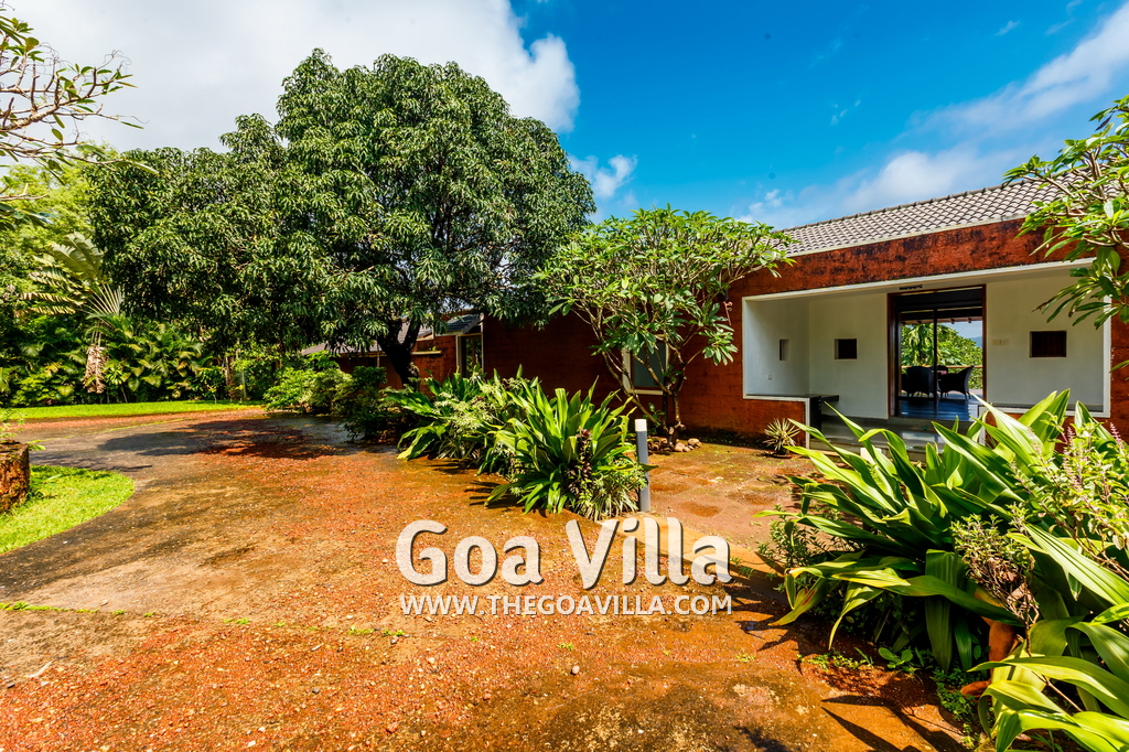 Aldona is a non-touristy area, a village neighborhood with many trees. But it is close to the popular beaches of Baga and Anjuna. The villa’s settings, decorations, and the surrounding area all promote peaceful living within nature. It is a great choice for guests who prefer luxury and privacy in a serene and green location. This house is popular with film stars and celebrities visiting Goa. The 3 houses together are also given away on rent for weddings.