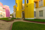 Gautam Hotel has an independent villa in a hotel complex with its interesting and precarious architecture and different bright colors. The furniture fits perfectly to its rounded forms. Each of the 10 villas has its own small swimming pool in a fenced backyard and can accommodate up to 5 people. The place attracts lovers for a leisurely pastime away from the bustle and crowded resorts.