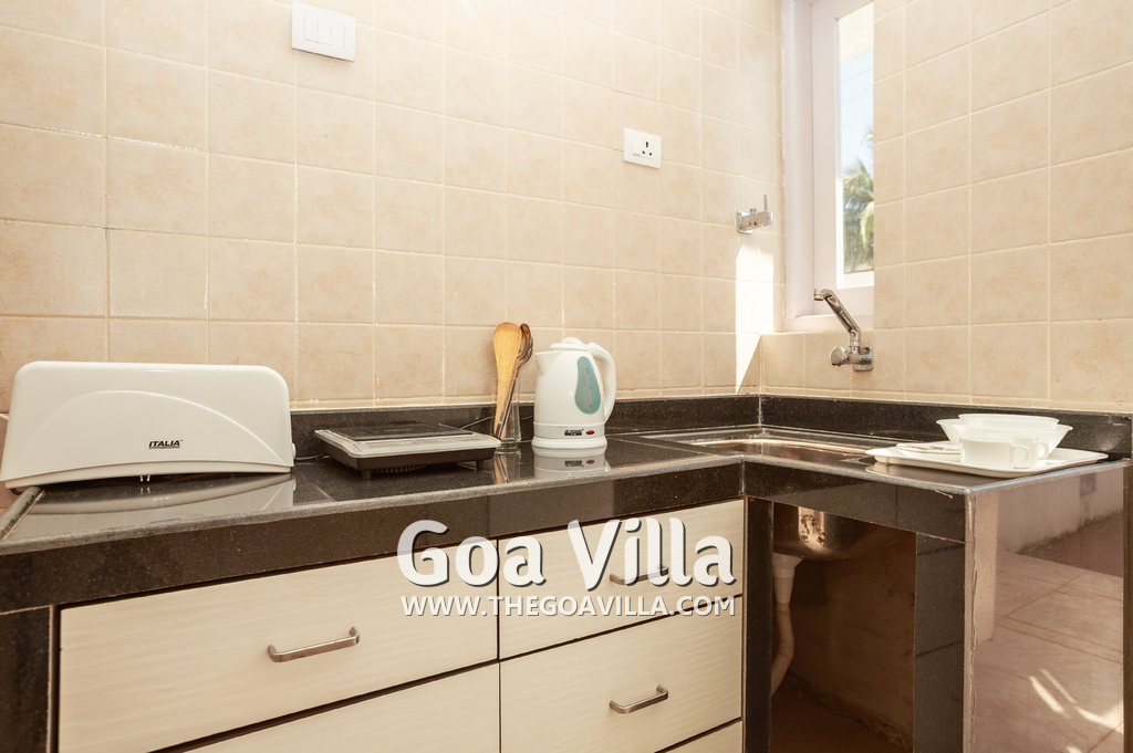 - Kitchen equipment: stove, refrigerator, toaster, kettle, crockery