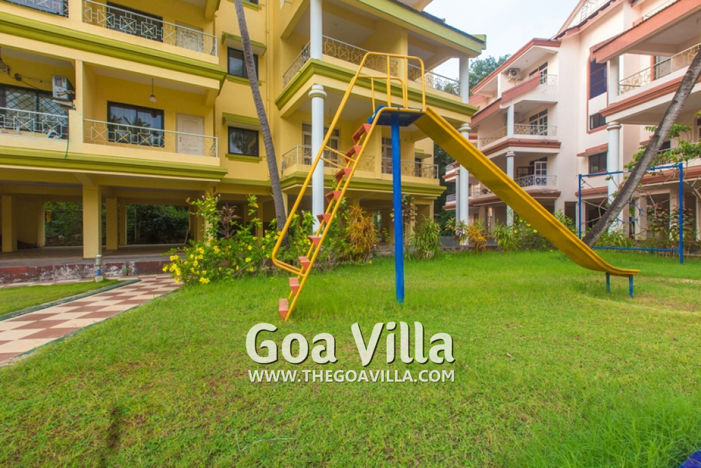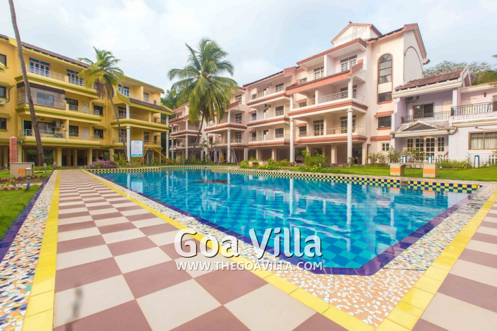 This is a bright and spacious 2 bedroom apartment located in the heart of Colva. This apartment is a part of complex with a swimming pool and a park for the children for outdoor activities.