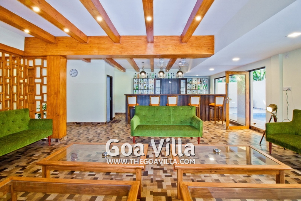 - There a large living room with a bar attached to the corner. The seating arrangement of the living room consists of comfortable sofa sets and it can accommodate up to 20 guests. There are also four coffee tables along the sofa sets. This place is perfect for morning coffee and pleasant communication.