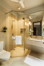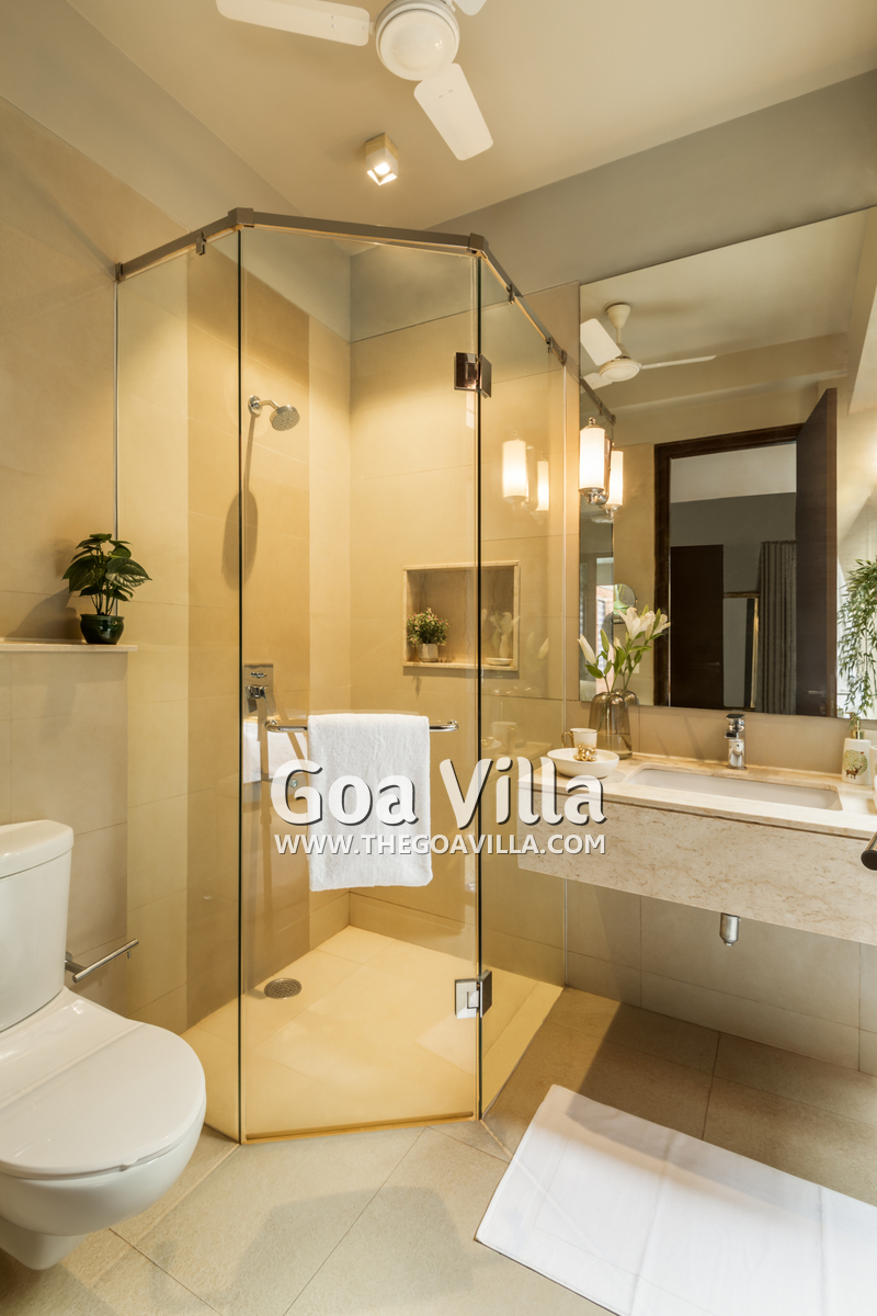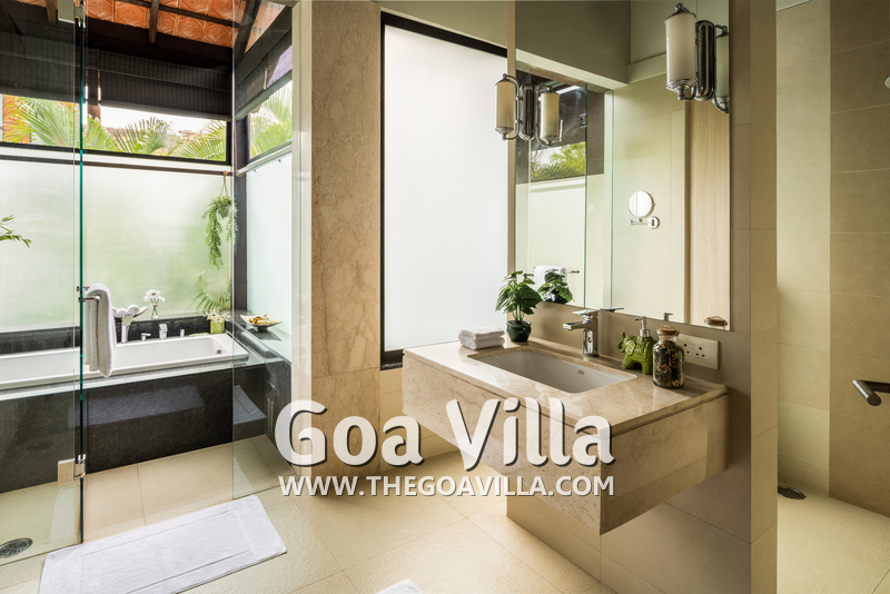 Bedrooms – Ariana 2 is spread over two floors, with the ground floor having the common areas and one bedroom. It opens to the pool terrace. The first floor has the master suite and one more bedroom. They both open to private balconies with seating areas. All three bedrooms are equally impressive. They have large king beds, satellite televisions, wardrobes, study tables, dressing areas, and bedside reading lights. They are all ensuite and air-conditioned.