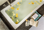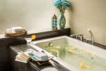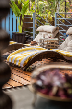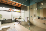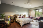 Bathrooms – The ensuite bathrooms are huge too. The two on the upper floor both have bathtubs. The ground floor bathroom has a shower cubicle and a unique outdoor area under shade with chairs. Take a break and relax here in complete privacy.