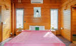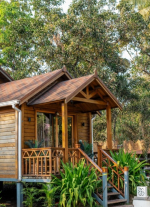Bedrooms – The chalet is made entirely of wood, including the bedroom. It has a large double bed with high-quality linen for two guests. The room is air-conditioned for your comfort. Two windows provide views of the garden. There is a large wardrobe with plenty of storage and hanging space. There is also a mirror and a mini refrigerator. High wooden ceiling allows plenty of air and light to flood the space. A glass door slides open to a balcony, which also faces the garden and pool.