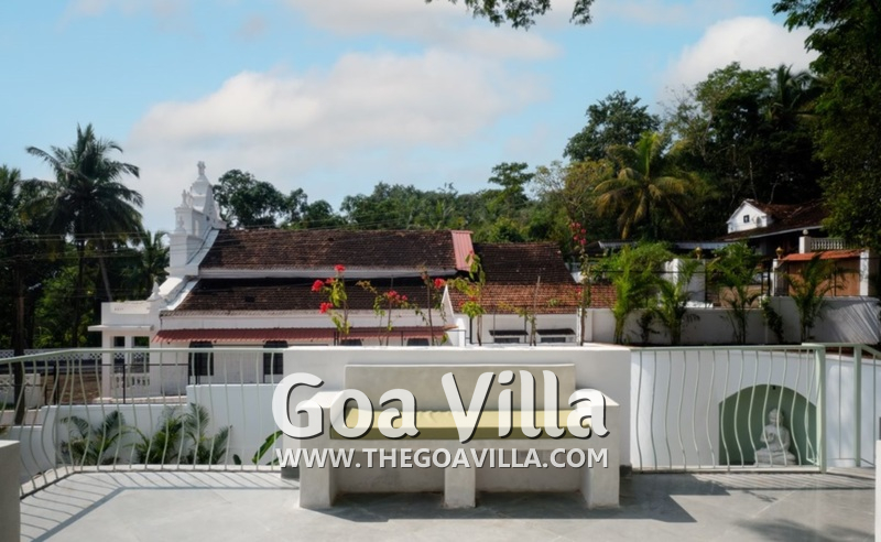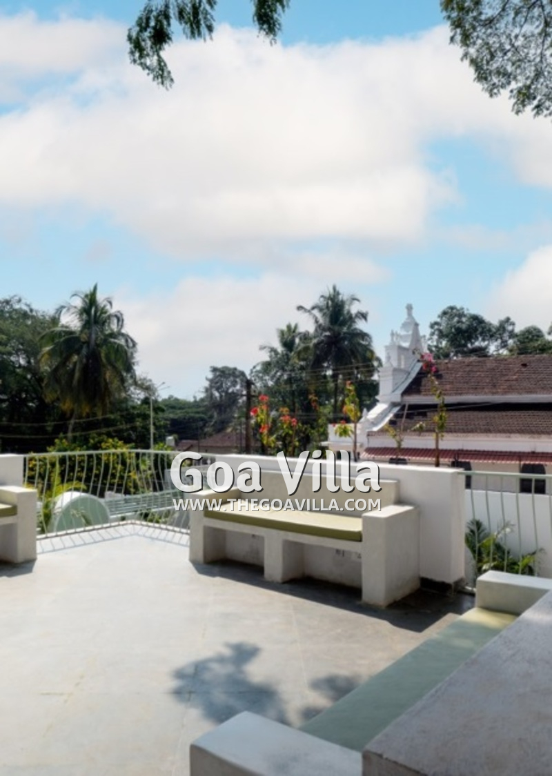 Swimming Pool – There is a beautiful L-shaped pool outside the house, which will be exclusively for you. Swim anytime you want. On the poolside, you will find a garden and manicured lawn. It has a life-size statue of Buddha. Villa Grande in Caldolim has a terrace with a seating area for those gorgeous sunset views. A staircase comes down directly from the terrace to the pool, providing easy access.