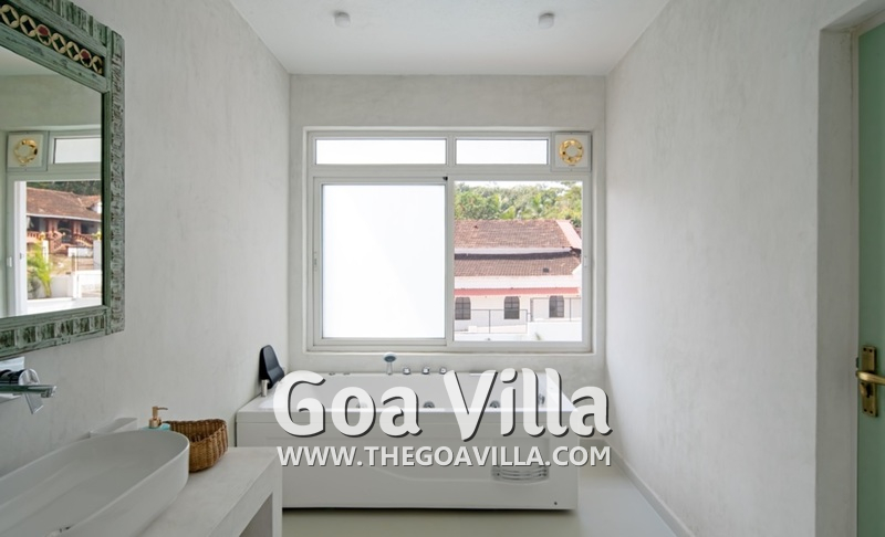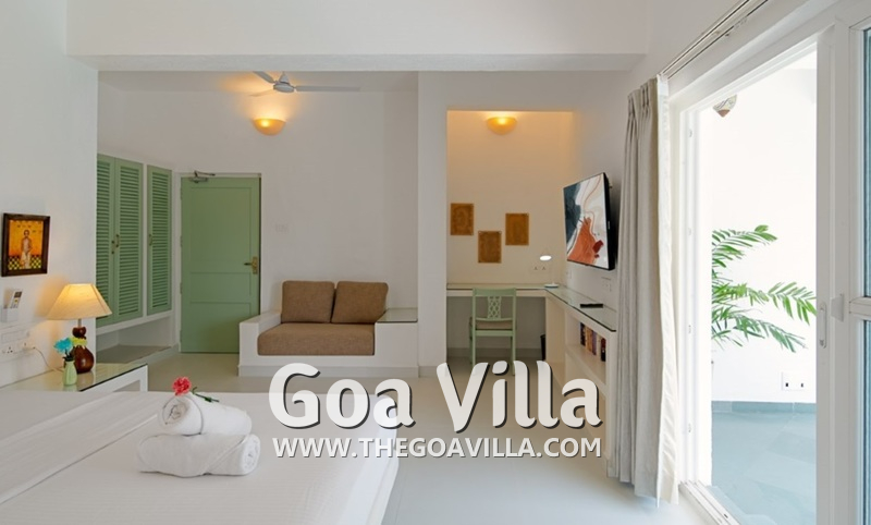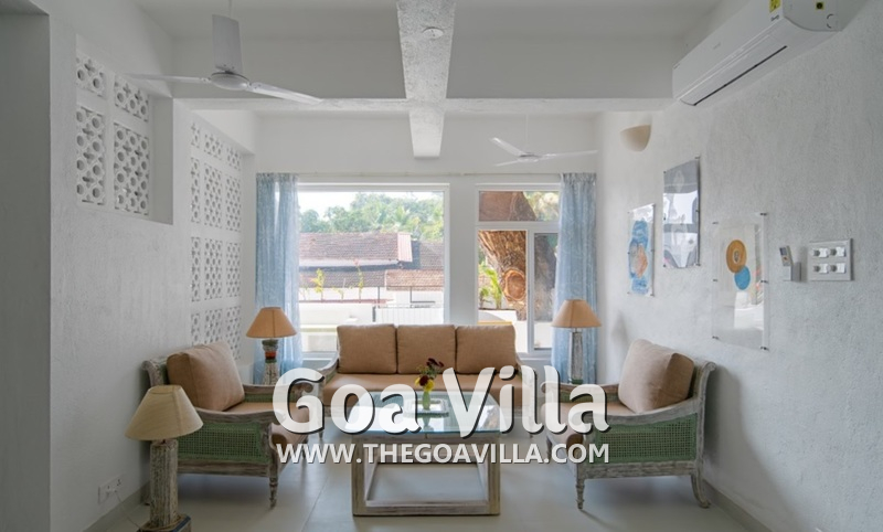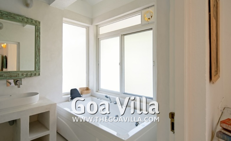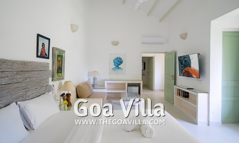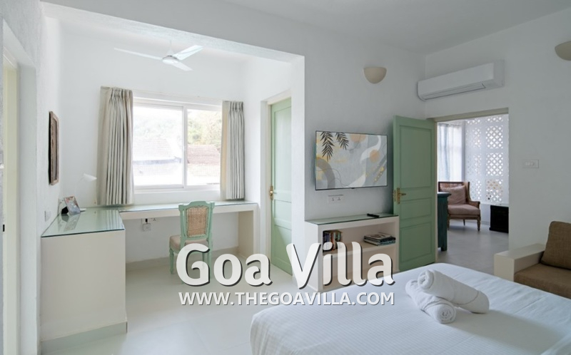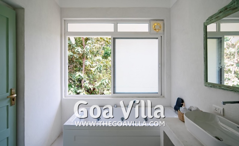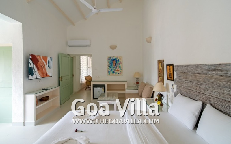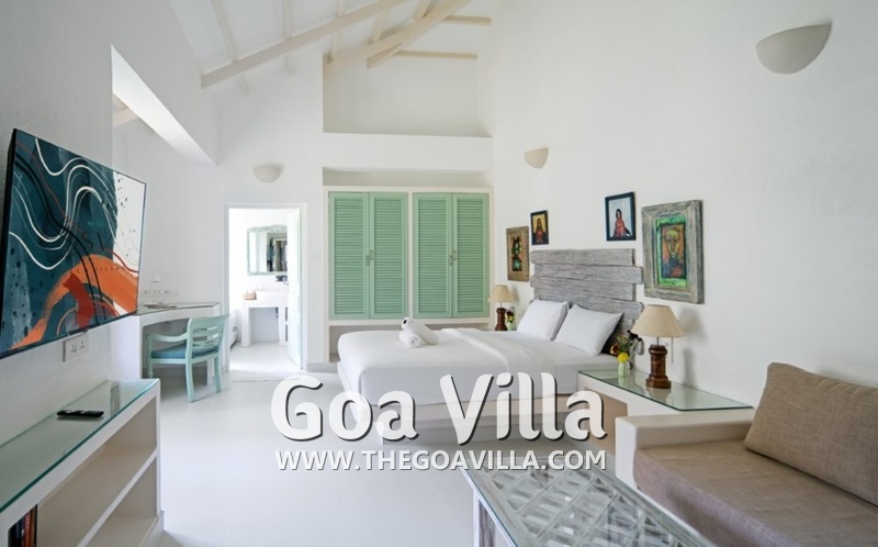 Stay in a classic Portuguese-era country home in the countryside of North Goa. Villa Grande has been aptly named, as it is a huge property spread over a large private estate with a pool, lawn, garden, and many trees. It is a 6-bedroom villa that can comfortably sleep a group of 12 guests. All the rooms in this luxury house are huge. Grande is a fully-packed villa where you will have a pool table, cards table and a steam room, which is so relaxing after a day of touring. The bathrooms have a Jacuzzi tub. Besides, this is a fully-staffed property where there is a full-time cook and a housekeeping team, so you can just relax and enjoy your holiday.