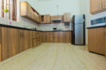 The kitchen is large with multiple kitchen cabinets, refrigerator, microwave and all modern amenities.