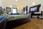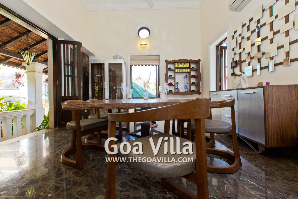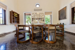 The dining room seats eight and is air-conditioned with exquisite decor and furniture. The room leads out to an open terrace with facilities for a barbecue.