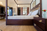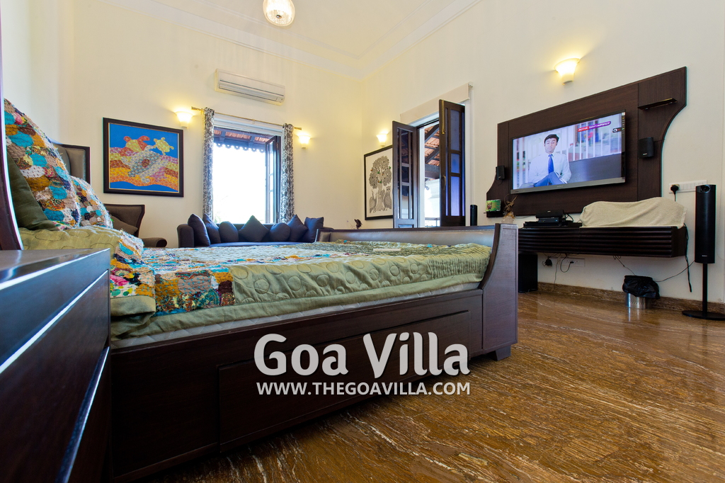 The master bedroom is on the first floor and has been lavishly furnished with a king sized bed, air conditioning, antique furniture, DVD player and a T.V.
